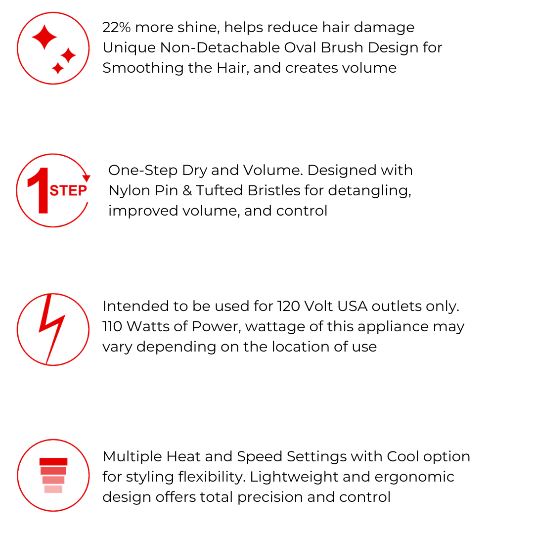 - For smooth blowouts, place the Volumizer close to the roots and brush down toward the ends. The mixed nylon-pin with rounded tips quickly while tufted bristles with boar technology gently grip hair to smooth out hair.